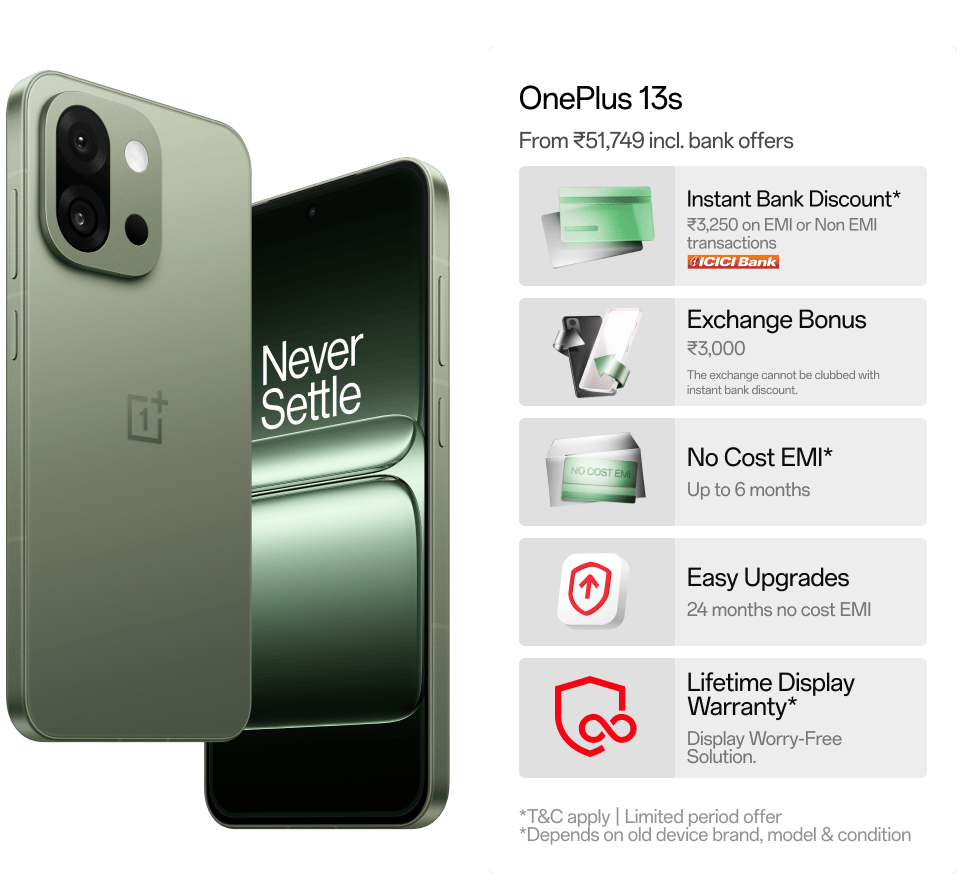 OnePlus 13s को पहले 54,999 रुपये में लॉन्च किया गया था. सेल शुरू होने से पहले इसकी कीमत 54,998 रुपये थी, लेकिन Amazon की बैंक ऑफर का फायदा लेकर इसे आप केवल 47,999 रुपये में खरीद सकते हैं. इसका मतलब है कि लांच प्राइस से सीधे 7,000 रुपये की बचत होगी.