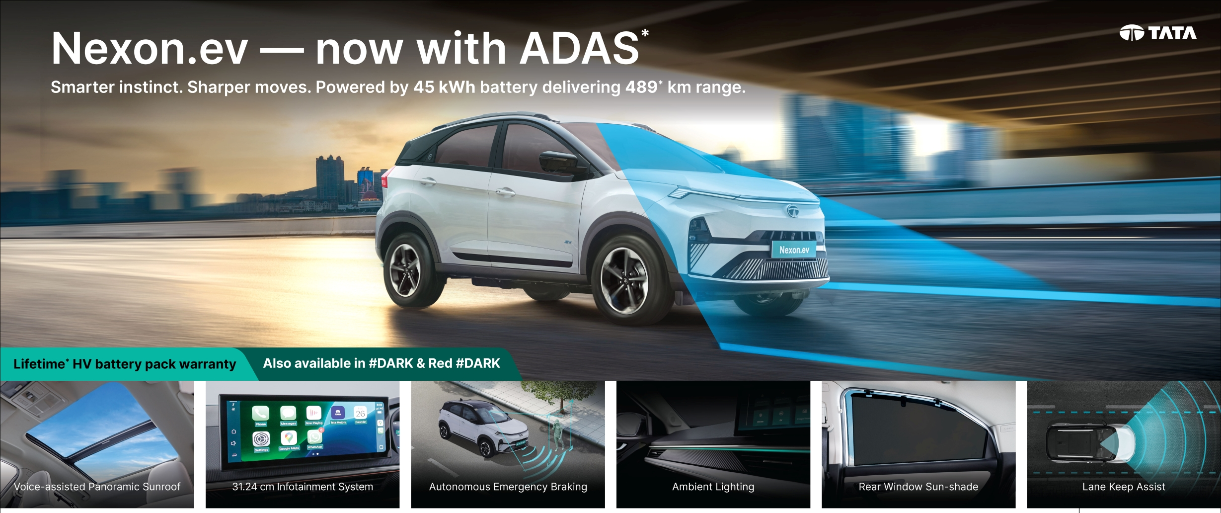 टाटा ने Nexon.ev Dark Edition भी लॉन्च किया है, जो पूरी तरह ब्लैक थीम पर बेस्ड है.